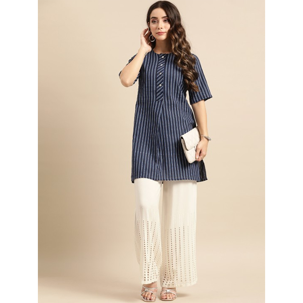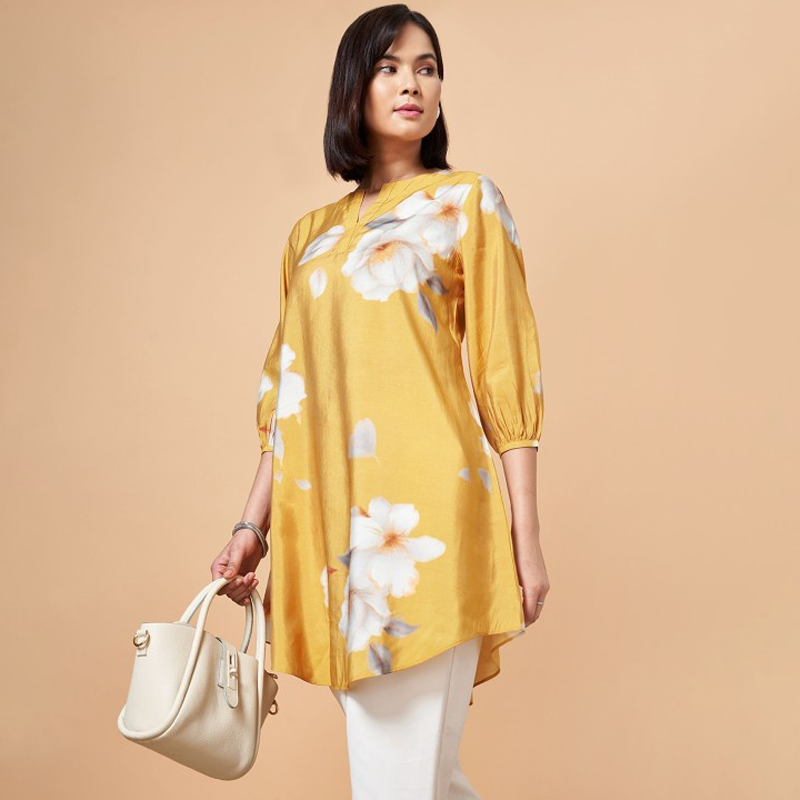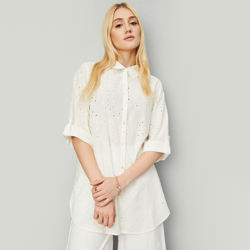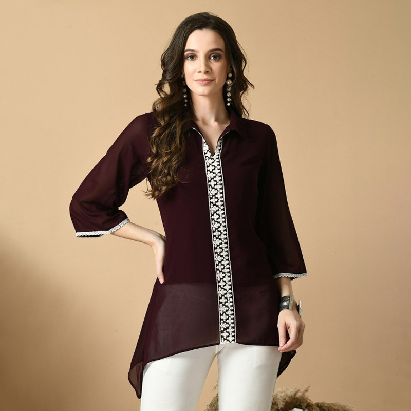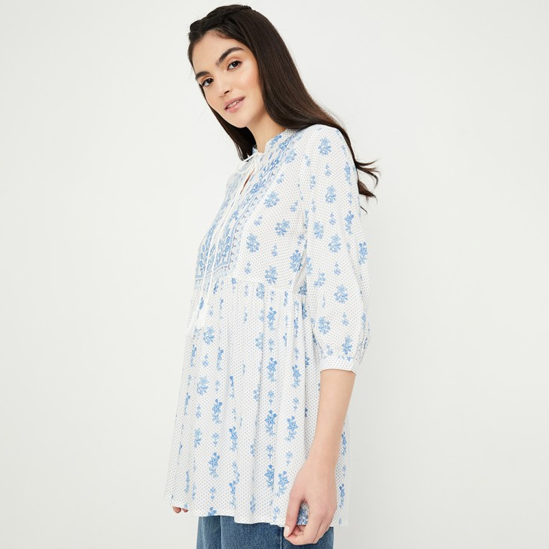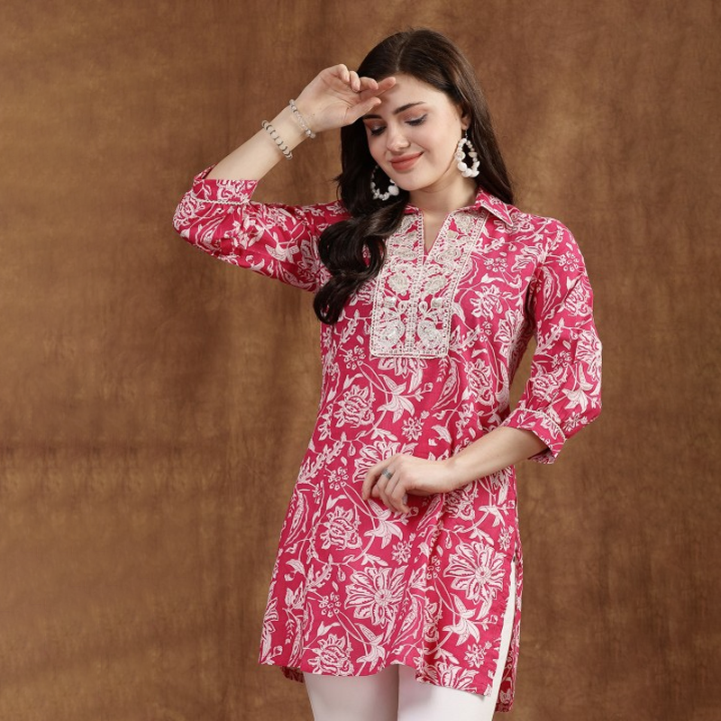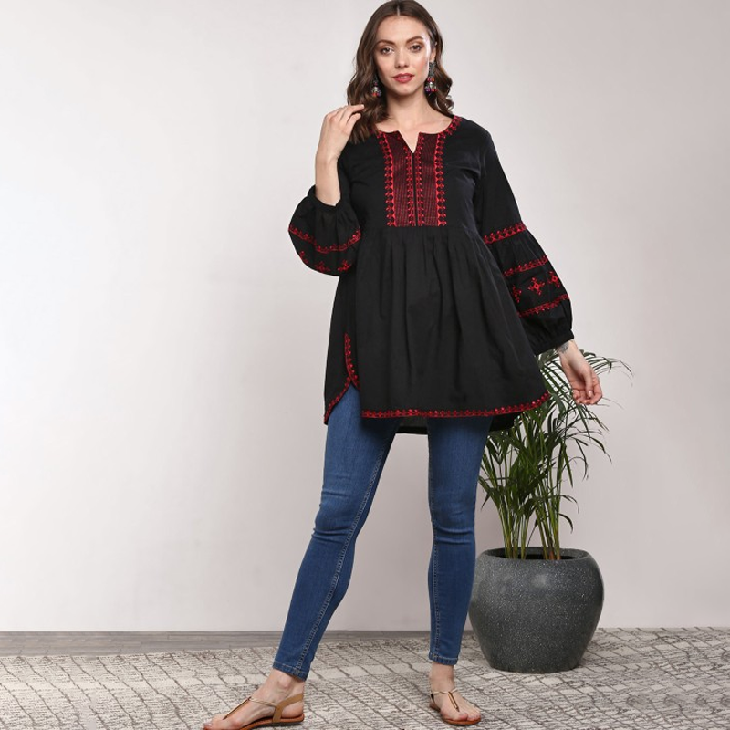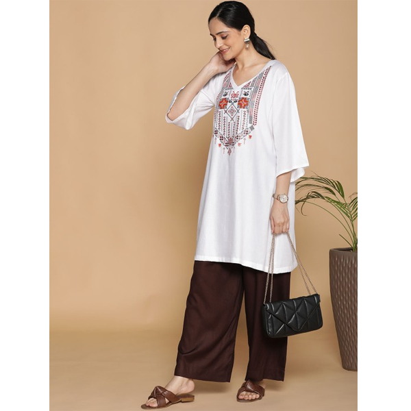 Embroidered Mandarin Collar Three-Quarter Sleeves Tunic