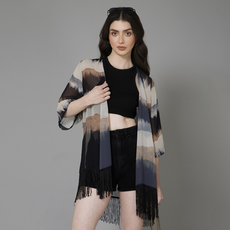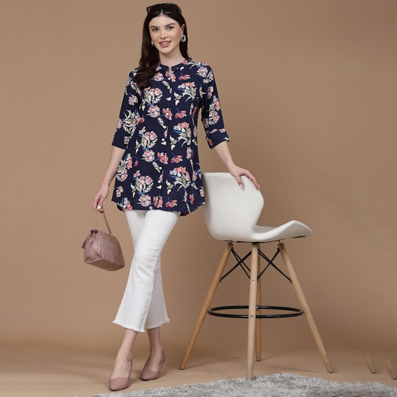 Women Abstract Printed Spread Collar Shirt