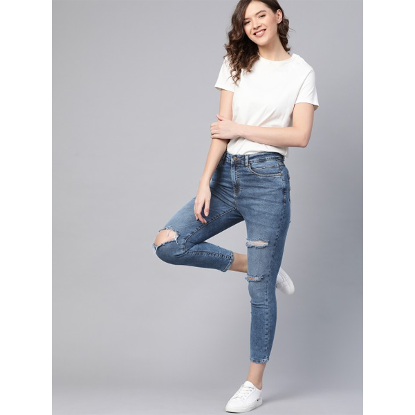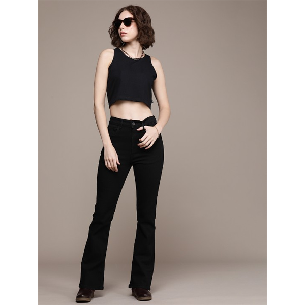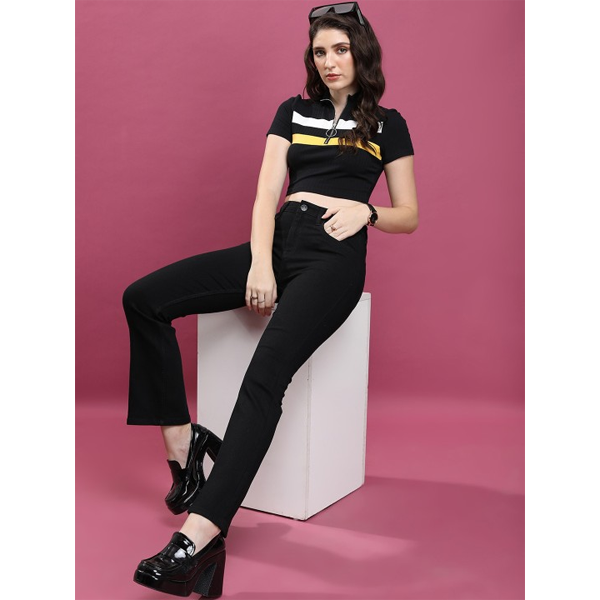 Solid Round Neck Ribbed Crop T-shirt