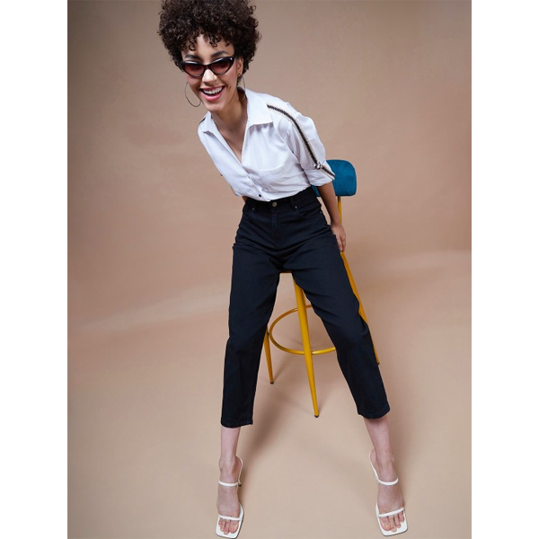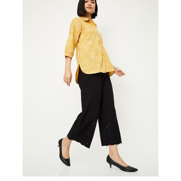 Women Solid Shirt Collar Polyester Top