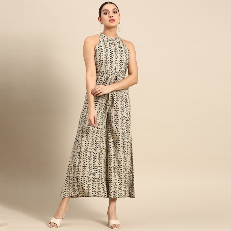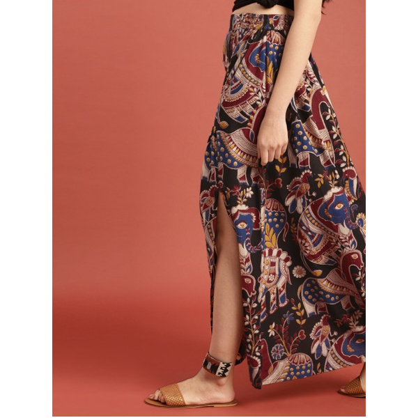 Brown & Black Ethnic Motifs Print Maxi Dress