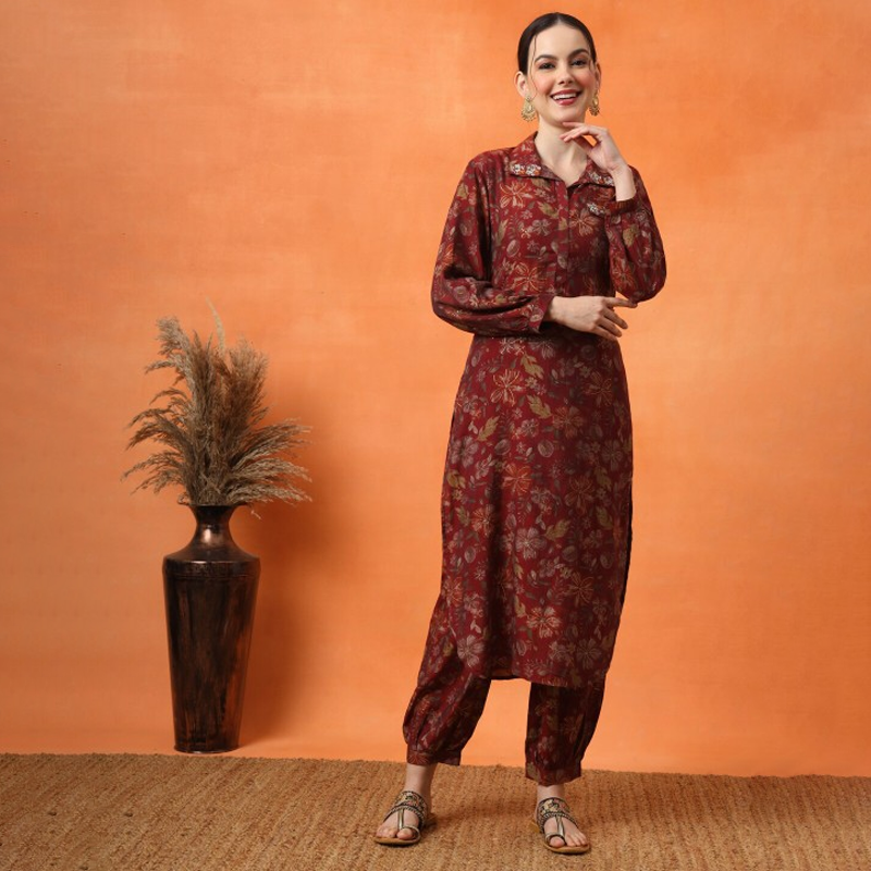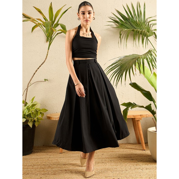 V-Neck Top With Flared Skirt Co-Ords