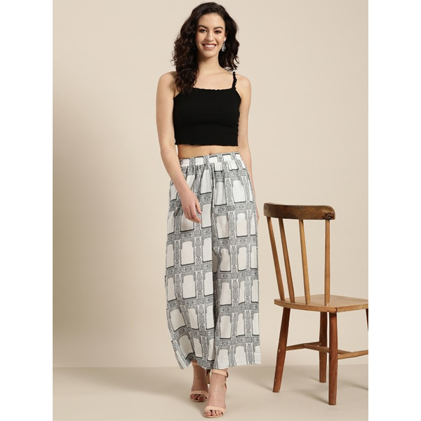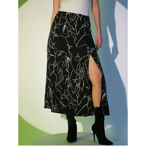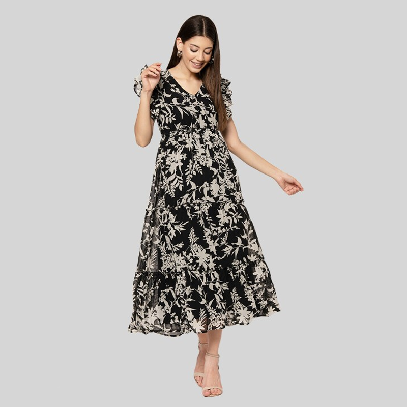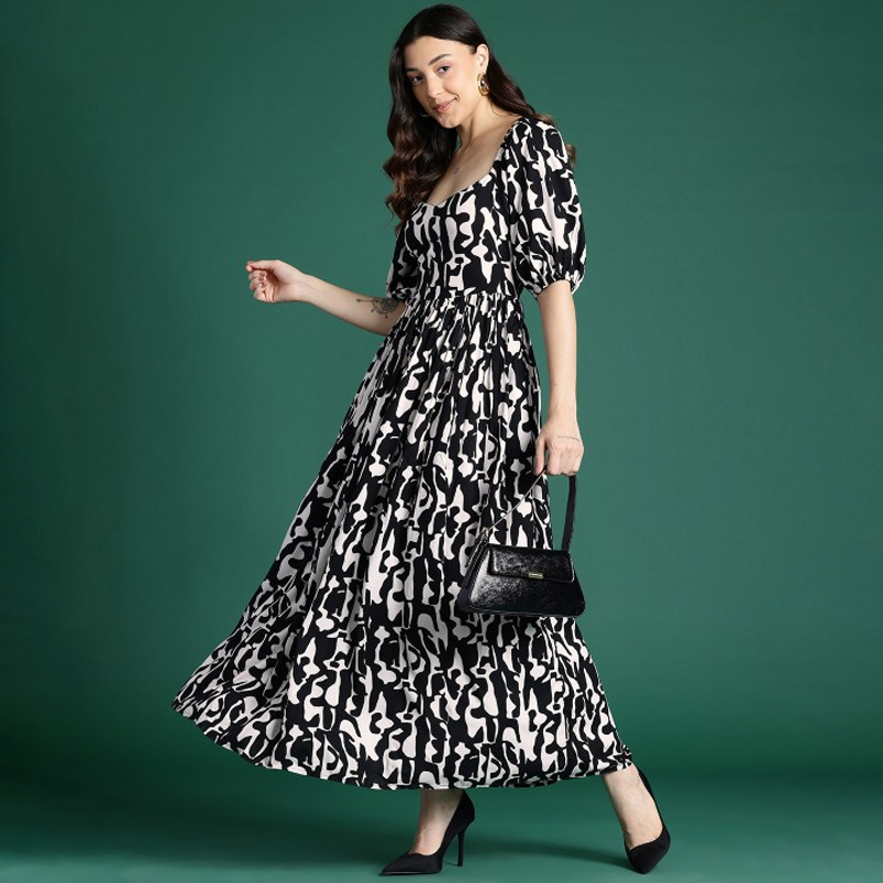 Printed Fit & Flare Monochrome Maxi Dress