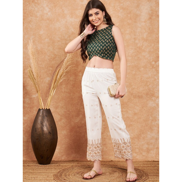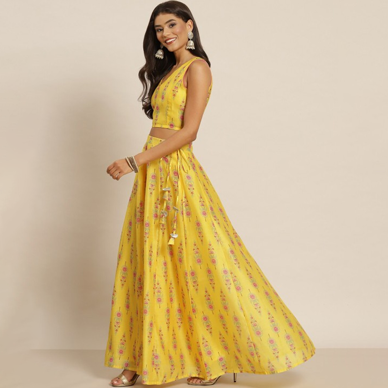 Women Chanderi Printed Lehenga & Crop Top