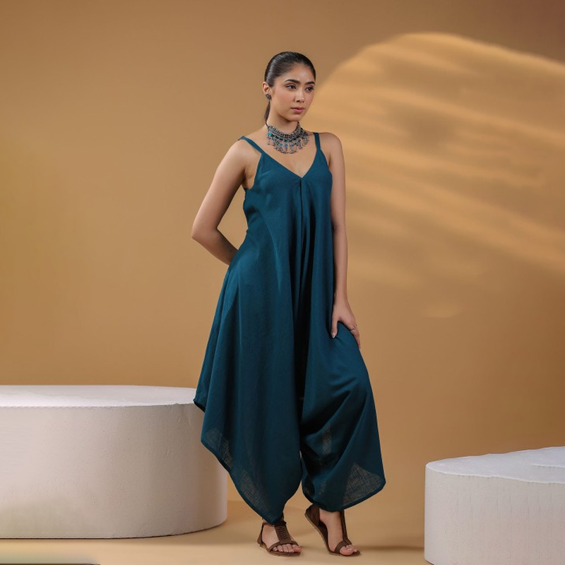 Blue Green Solid Cotton Blend Saree