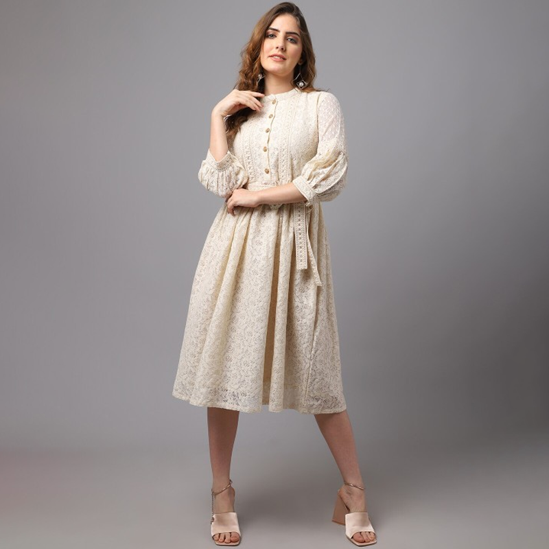 Women Printed Maternity Fit & Flare Midi Dress