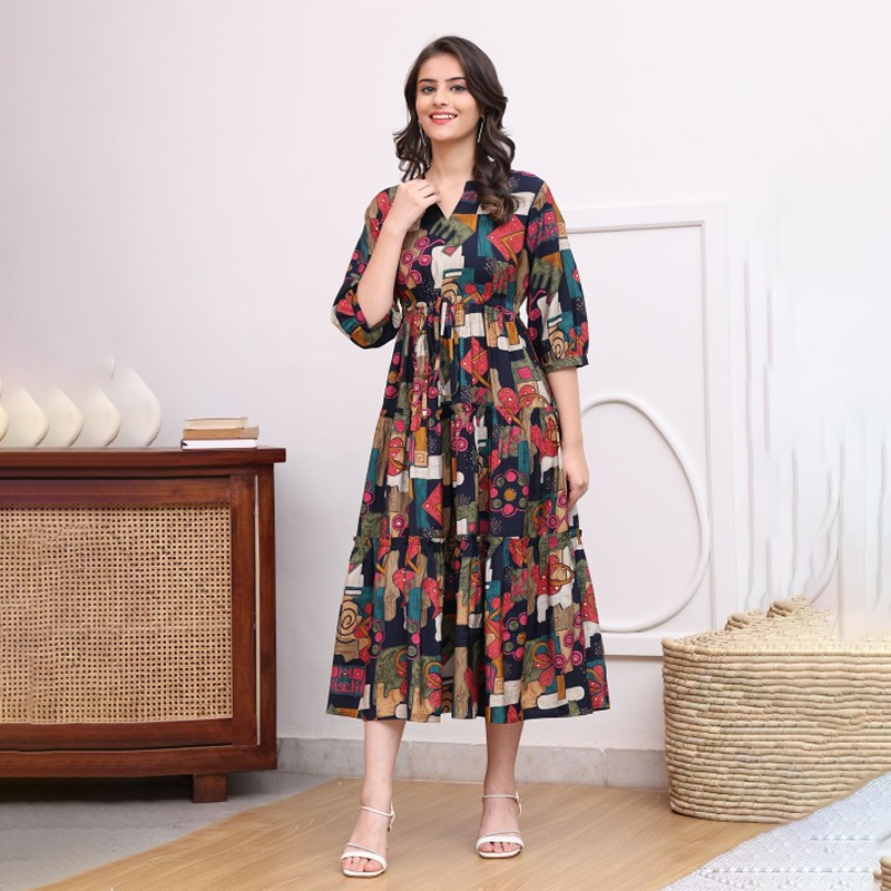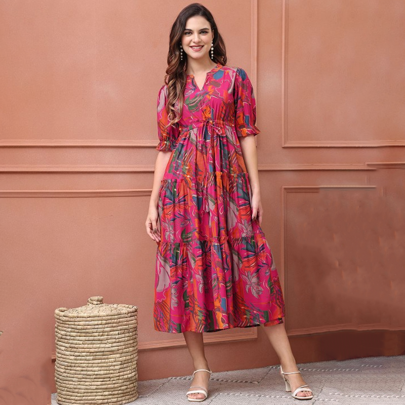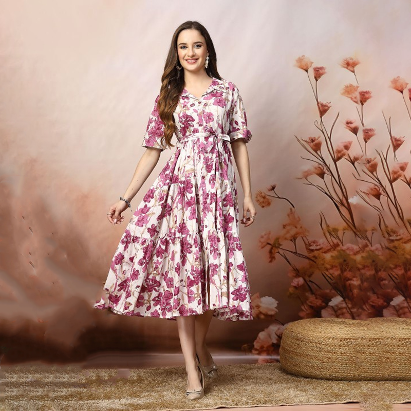 Printed Tiered Fit & Flare Midi Dress