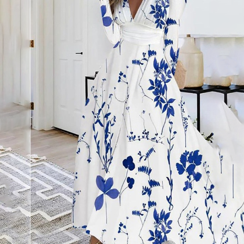 Floral Printed Bell Sleeves Maxi Dress