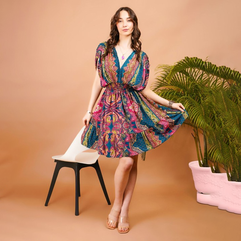 Women Radiant glow paisley print boho mini dress