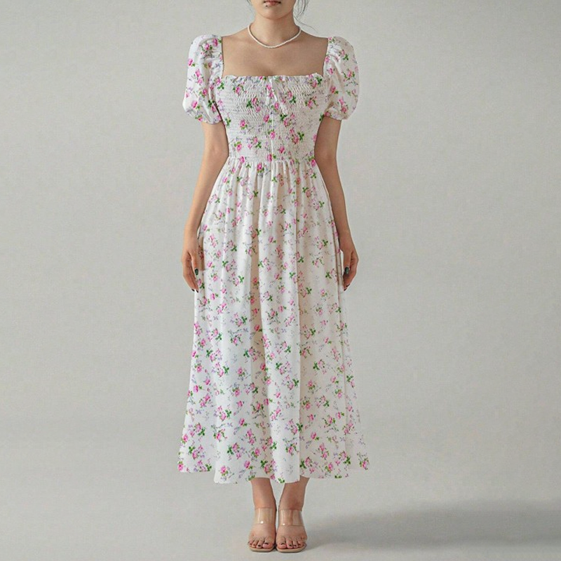 Floral Print Puff Sleeve Fit & Flare Maxi Dress