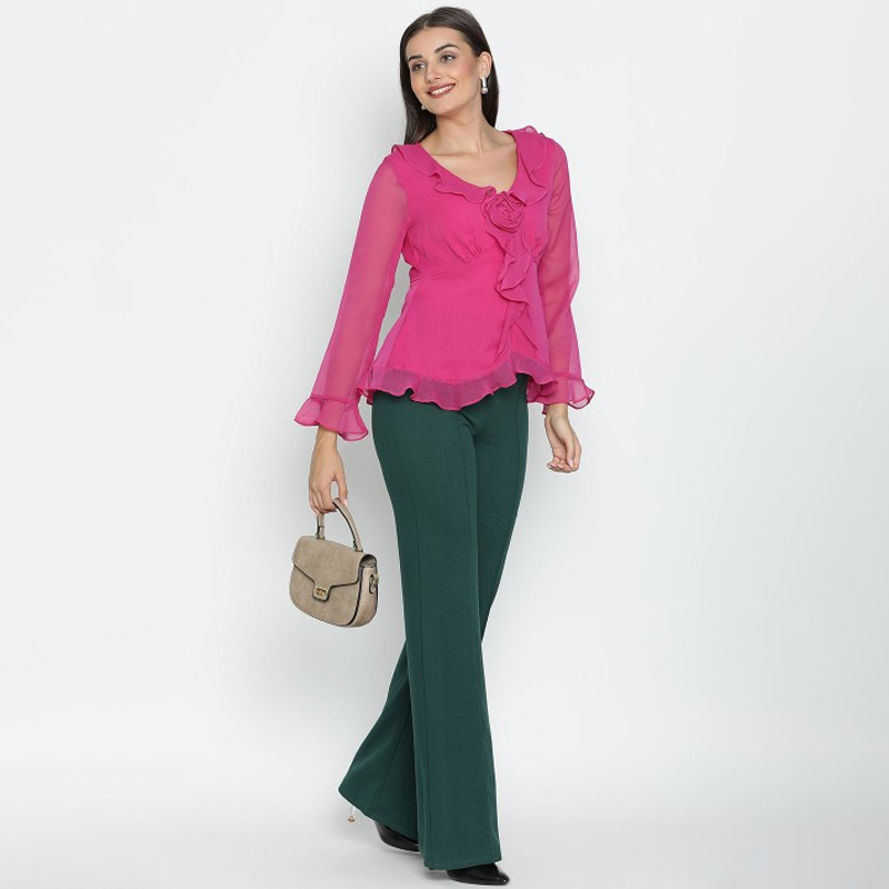 Women Solid V-Neck Top