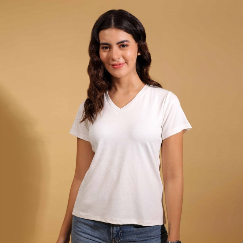 Women Solid V-Neck Cotton T-shirt