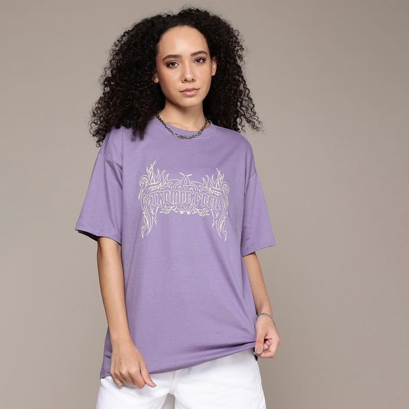 Typography Printed Round Neck Oversized Pure Cotton T-shirt