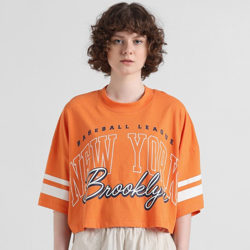 Onldowntown Varsity Printed Raglan Sleeves Pure Cotton Boxy Crop T-shirt