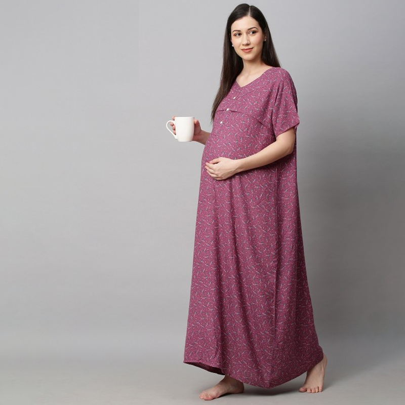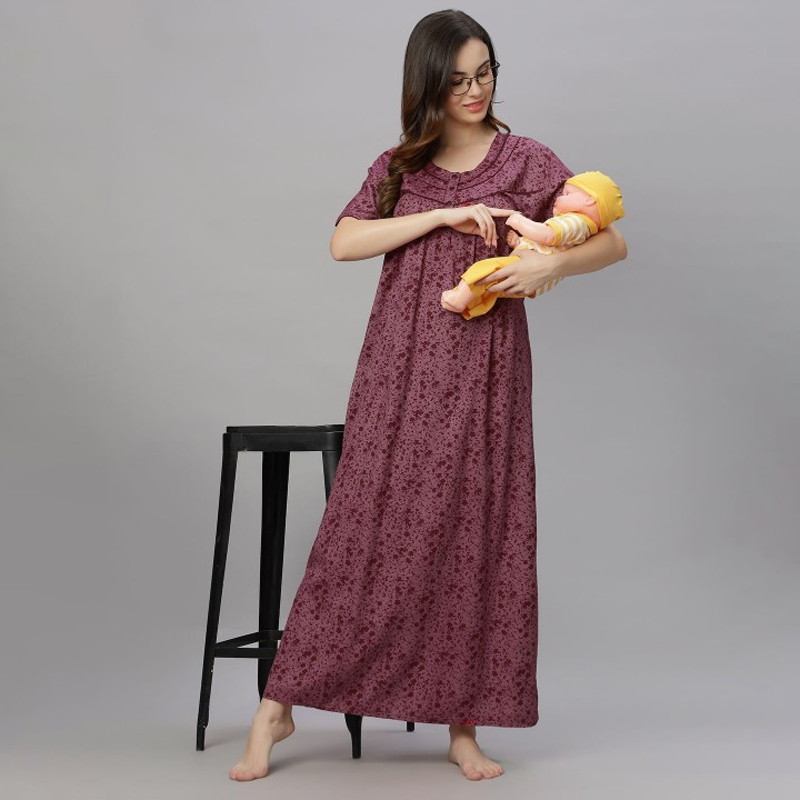 Women Floral Printed Maternity Maxi Nightdress