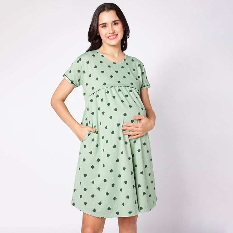 Green Conversational Printed Maternity Nightdress