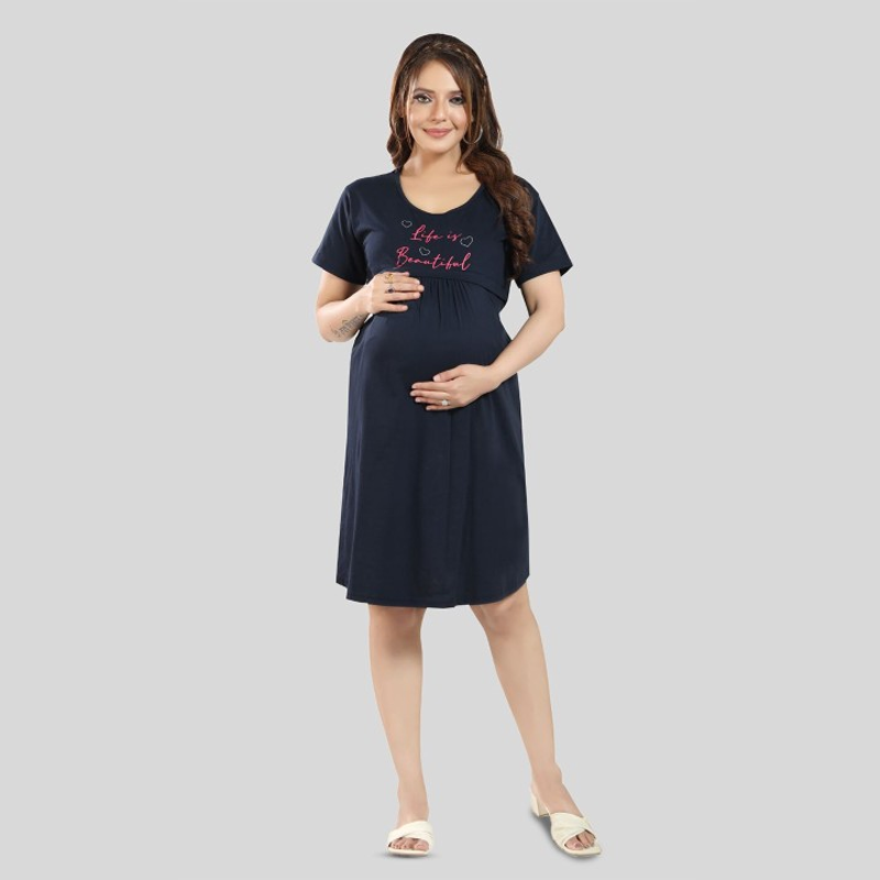 Women Typography Printed Cotton Maternity T-Shirt Dress