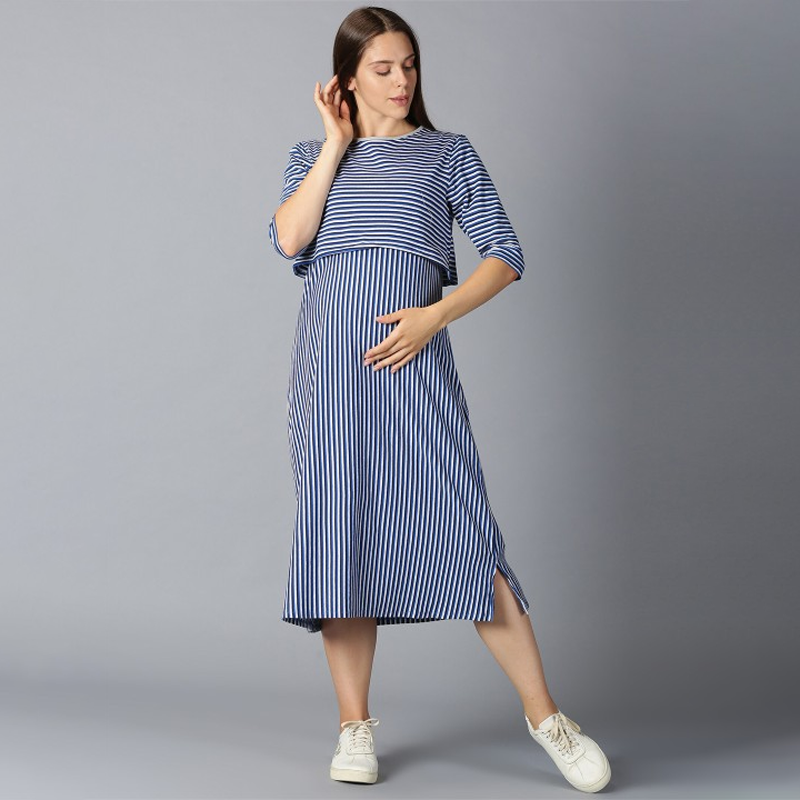 Blue Striped Maternity A-Line Dress