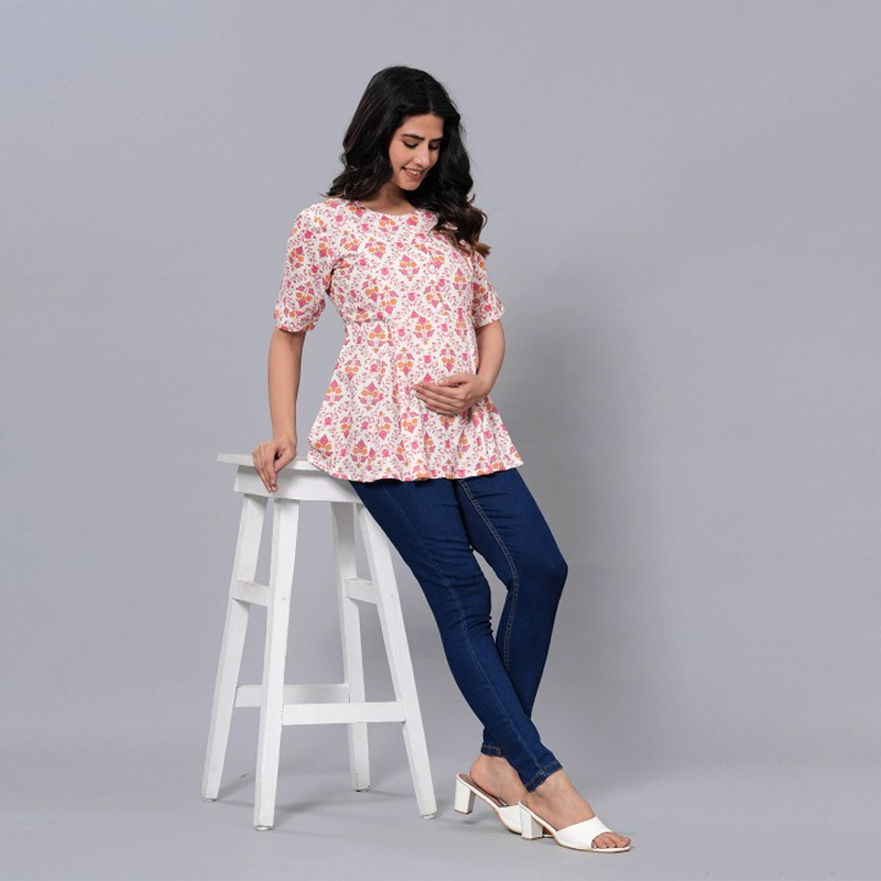 Floral Print Round Neck Maternity A-Line Top