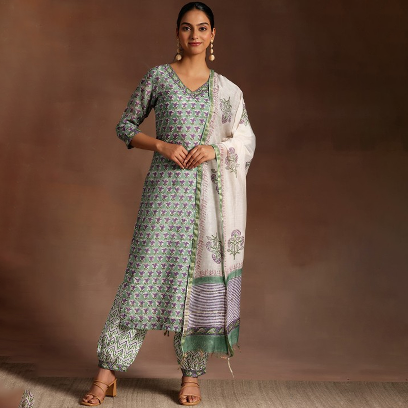 Floral Printed Zari Kota Saree